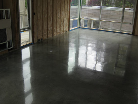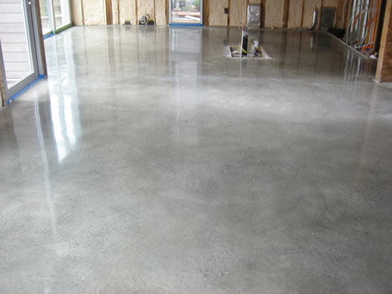 Enhances the natural beauty of the concrete. This process simply polishes the cream at the top level of the concrete not exposing any of the sand or aggregate. This finish leaves a smooth sealed surface which is easy to clean and maintain. Cream polished concrete finishes can range from low gloss matte to a high gloss mirror finish.
