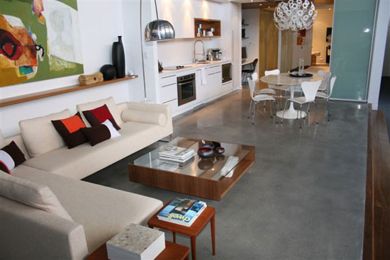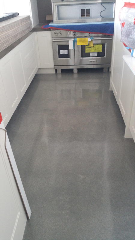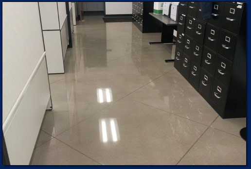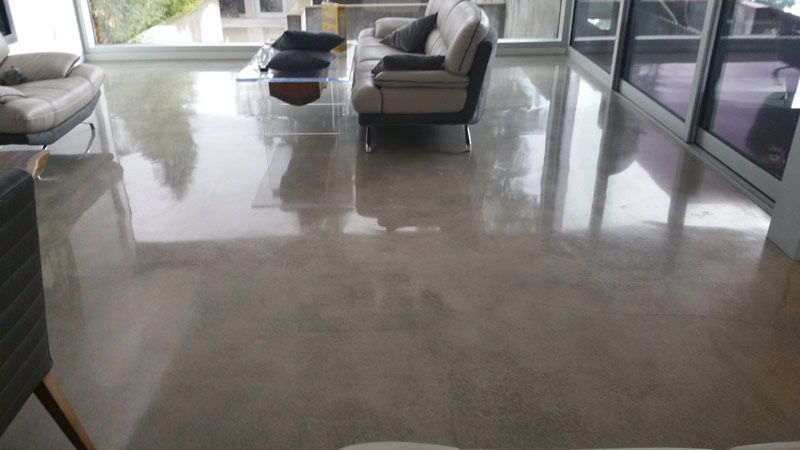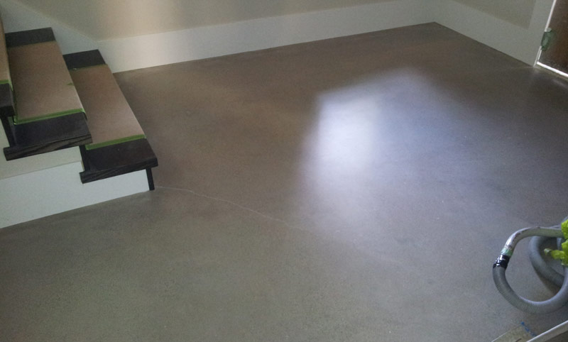 Starts with grinding to expose the sand in your concrete. The polishing enhances the beauty of the concrete's sand exposure with finishes ranging from low gloss matte to high gloss mirror finishes.