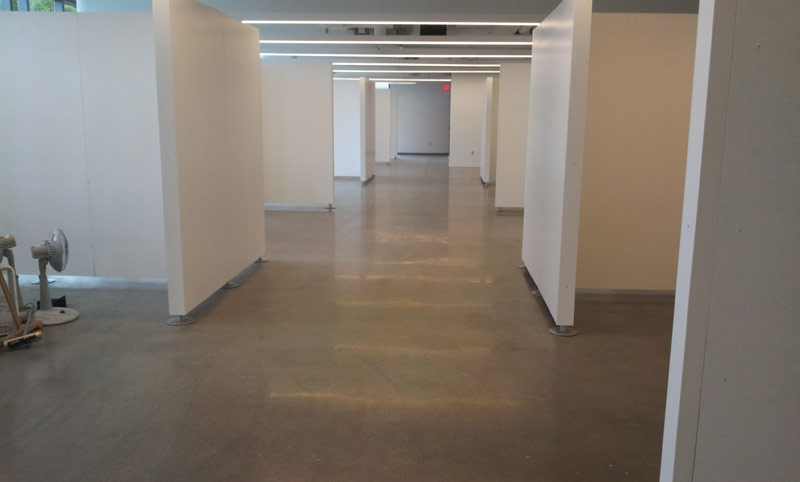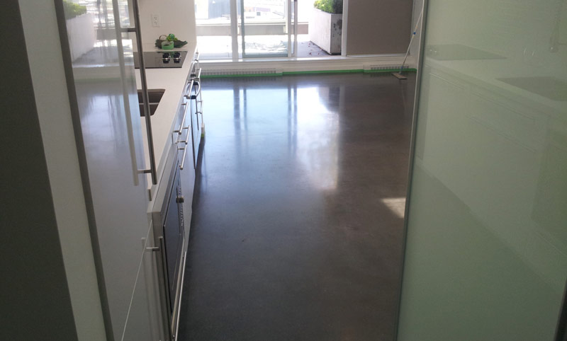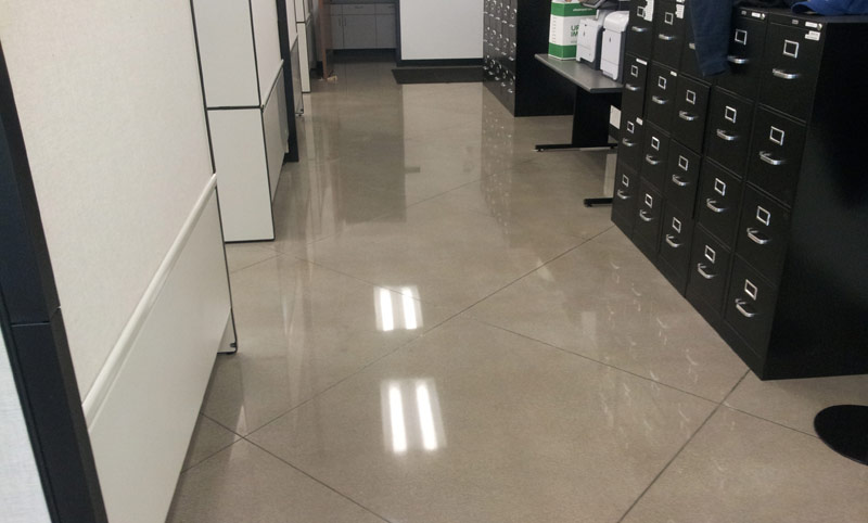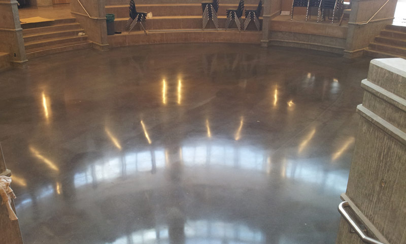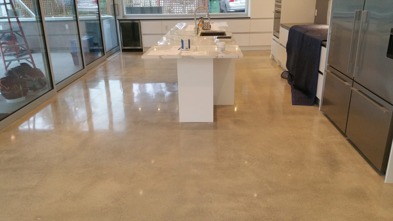 Starts with grinding to expose the sand in your concrete. The polishing enhances the beauty of the concrete's sand exposure with finishes ranging from low gloss matte to high gloss mirror finishes.